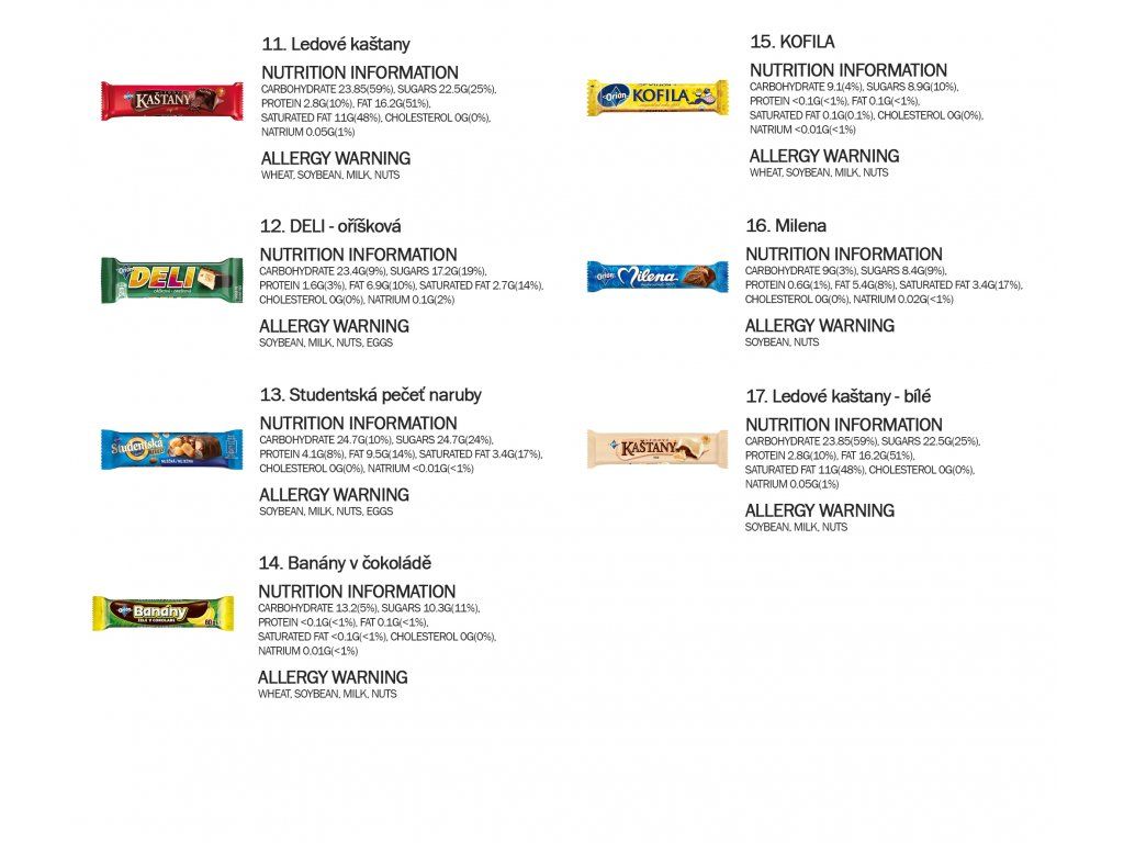 The bold, darker sibling of the classic. Peanuts, jelly and raisins enrobed in rich dark chocolate. Intense and satisfying. - Čokoláda oříšková (Orion Hazelnut Milk Chocolate)