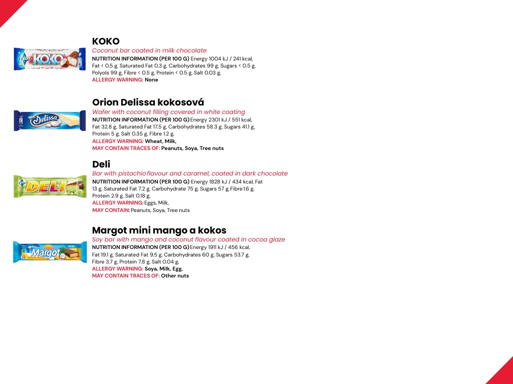 Kokosriegel aus geraspeltem Kokos, überzogen mit Milchschokoladenglasur. Weiche Kokosfüllung mit süßem Milchschokoladenüberzug.